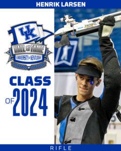 A generational talent, winning a team and individual national championship as a freshman before turning professional … Led Kentucky to the 2018 NCAA National Championship, posting the highest aggregate score on the team … Won the 2018 NCAA Air Rifle Individual National Championship … Set school records in smallbore, air rifle and aggregate in just his one collegiate season … 2018 NCAA Shooter of the Year and NCAA Freshman of the Year … With the exception of the NCAA Smallbore Individual final, Larsen finished first in every event in which he competed during the 2017-18 season … Represented his home country of Norway in the 2020 Tokyo Olympics … Won the Smallbore Men’s Gold at the 2022 ISSF World Championships.
