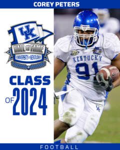 Outstanding defensive tackle helped UK to four consecutive bowl appearances, including three bowl wins … Tremendous senior season featured 56 tackles, 12 tackles for loss, four quarterback sacks, five pass breakups and six QB hurries … Earned All-SEC first team honors … UK’s Most Outstanding Defensive Player of his senior season … Winner of the Jerry Claiborne Award for academics and team attitude … National Defensive Lineman of the Week vs. South Carolina … SEC Defensive Lineman of the Week twice … Three-year member of the SEC Academic Honor Roll … Drafted by the Atlanta Falcons … Played 13 years in the NFL with Atlanta, Arizona and Jacksonville … Won or was nominated for multiple community service and sportsmanship honors … Currently works for Jacksonville as a college football scout.